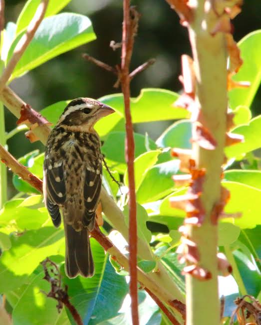 Females and immature males are brown above with warm orange or buff on the breast, and some have streaks on the sides of the breast. All have grayish bills. In flight, they flash bright yellow under the wings.  The male Black-headed Grosbeak does not get its adult breeding plumage until it is two years old. First-year males can vary from looking like a female to looking nearly like an adult male.